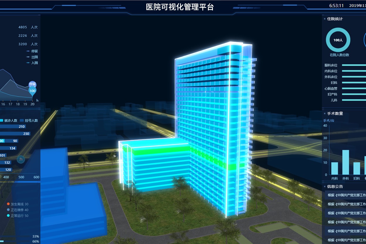 醫(yī)院基礎(chǔ)設(shè)施的統(tǒng)一管理,并以3D效果展示醫(yī)院全貌,現(xiàn)擬建設(shè)醫(yī)院監(jiān)控可視化平臺(tái),實(shí)現(xiàn)對(duì)醫(yī)院基礎(chǔ)設(shè)施層的環(huán)境、視頻、資產(chǎn)設(shè)備等設(shè)備的實(shí)時(shí)數(shù)據(jù)、設(shè)備狀態(tài)、告警等的管理。